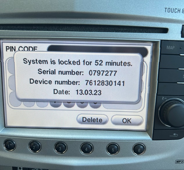 - Wyślij jego dane na e-mail kontakt@kod-radia.pl (zdjęcia ekranu z widocznymi parametrami radia – jeśli się nie wyświetlają, wpisz 3x błędny PIN).